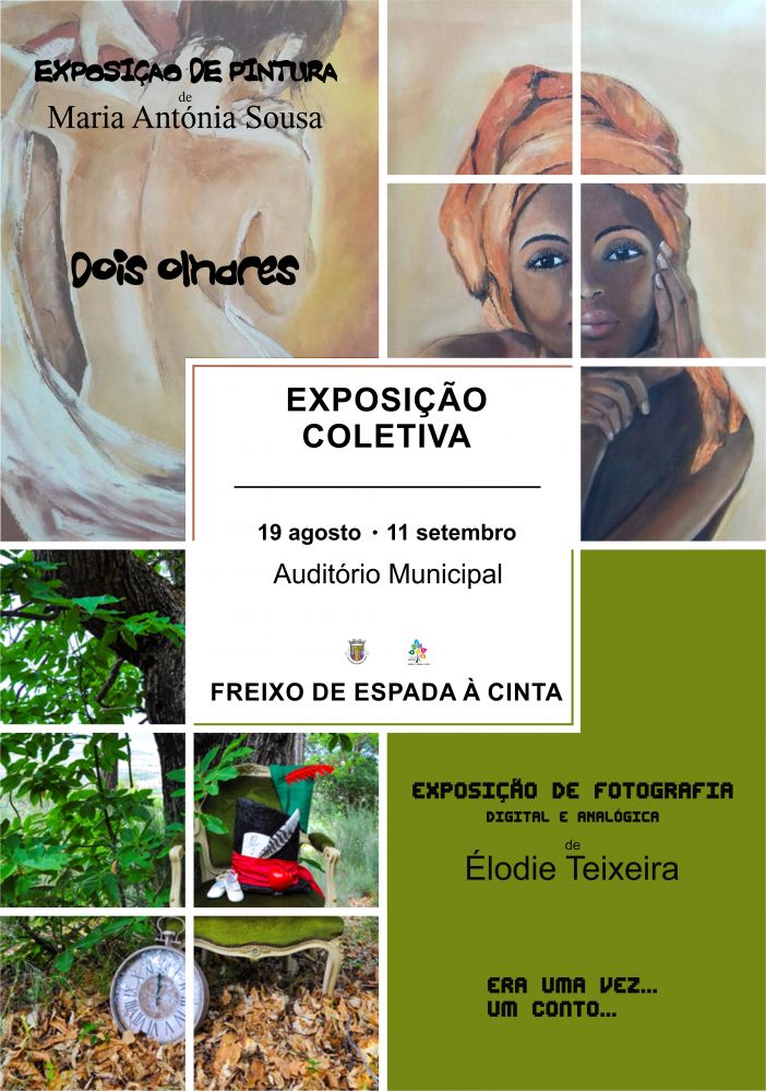A inauguração da exposição Era uma vez... Um conto... (fotografia digital e analógica), de Elódie Teixeira, e Dois olhares (Pintura), de Maria Antónia Sousa, ocorre no próximo dia 19 de Agosto, às 11h00, no Auditório Municipal de Freixo de Espada à Cinta, estando patente até dia 11 de setembro próximo.