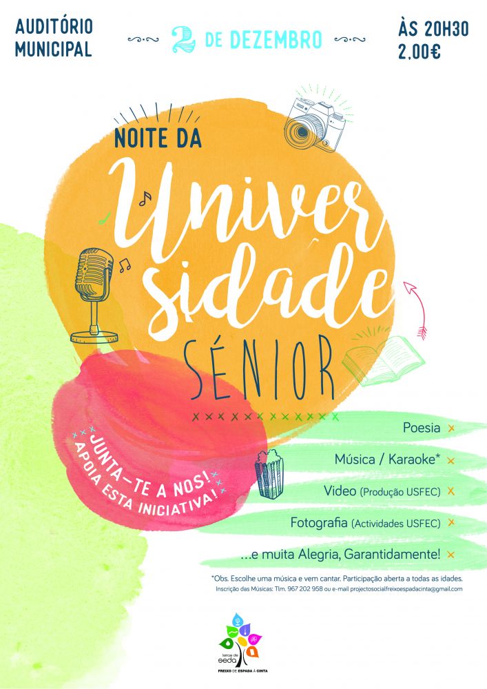 Porque não há idade para a alegria, os alunos da universidade Sénior de Freixo de Espada à Cinta, junto com o seu Coordenador João Paim, organizaram um evento, uma noite especial para alunos, familiares, amigos e vizinhos se divertirem e conhecerem as várias atividades que se realizam na USFEC.