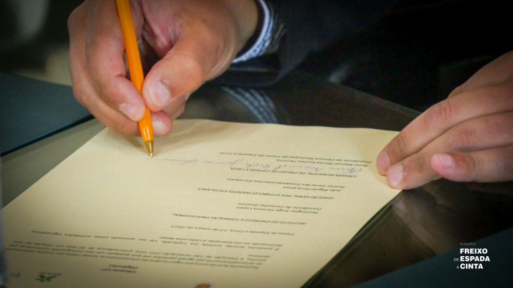Após as intervenções, procedeu-se à Assinatura formal dos Protocolos dos Cursos de Aprendizagem (Ensino Profissional) pelos representantes do Município de Freixo de Espada à Cinta, do IEFP e da Direção Geral dos Estabelecimentos Escolares, documentos esses logo de seguida homologados pelas Secretarias de Estado da Educação e do Trabalho. No final, o Executivo Autárquico ofereceu aos representantes das entidades parceiras uma simbólica lembrança constituída por produtos endógenos do concelho, seguindo-se uma visita guiada ao Pólo de Formação Profissional do Município de Freixo de Espada à Cinta.