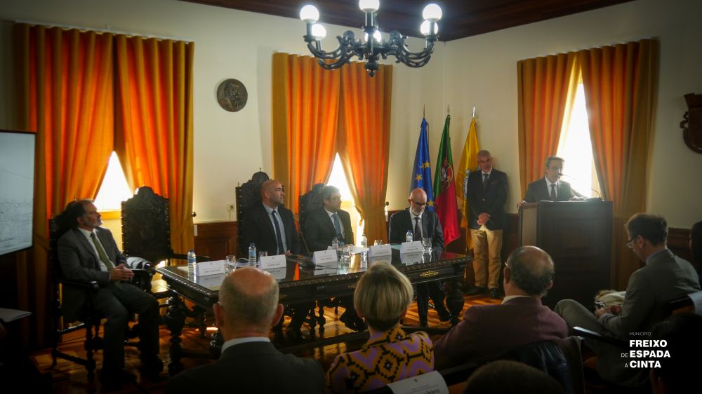Freixo de Espada à CintaDecorreu esta manhã, no Salão Nobre dos Paços do Concelho, a Cerimónia de Assinatura dos Protocolos dos Cursos de Aprendizagem (Ensino Profissional) em Freixo de Espada à Cinta, que contou com a presença dos Secretários de Estado de Educação, Prof. Dr. António Leite, e do Trabalho, Dr. Miguel Fontes. A cerimónia pública contou ainda com a presença da comunidade, dos docentes/técnicos, encarregados de educação e alunos que frequentam o Ensino Secundário Profissional.